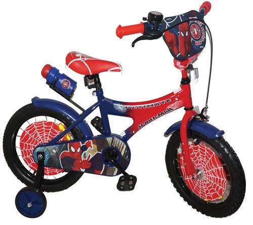 אופני מותגים לילדים דגם ספיידרמן מידה 12" עם גלגלי עזר.